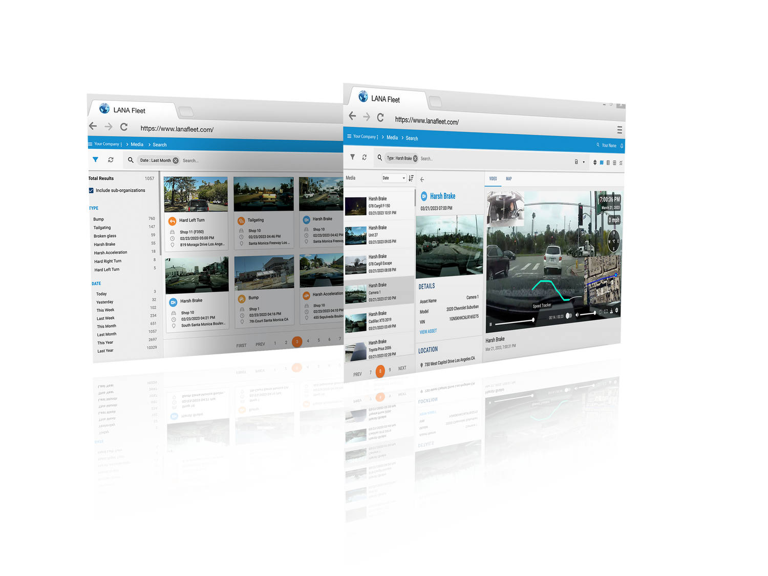 - Dual-facing cameras capture the action on the road and inside the vehicle
